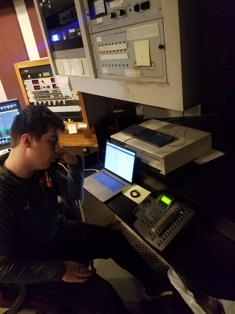 Ethan Collins, WAJR employee, fires the opening show theme for the WAJR morning show Talk of the Town.